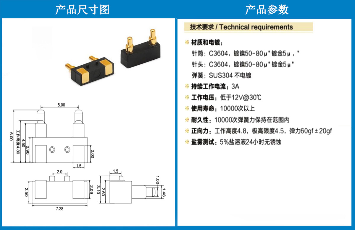 產(chǎn)品介紹:這個(gè)針通常用于智能手表,藍(lán)牙耳機(jī)上的有充電的功能,但是探針總體來說還是測(cè)試的